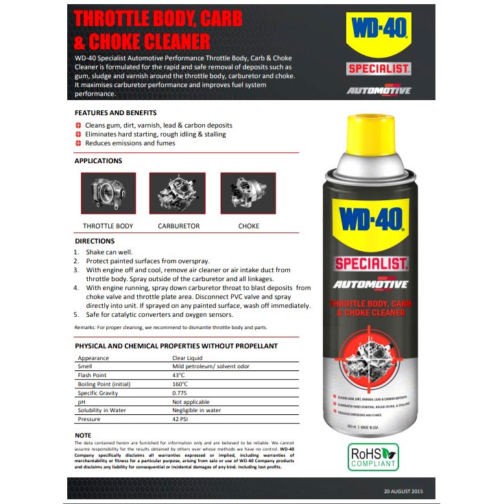 Wd 40 Philippines Wd 40 Specialist Automotive Throttle Body Carb Choke Cleaner Facebook from lookaside.fbsbx.com Carb cleaner is a mixture of strong solvents designed to disolve deposits and oily residue. Be *very* careful with this stuff around lacquer finishes. All i know about checking for leaks is spray on the hoses and listen to the idle. Wd40 is a water displacing light lubricant with. But with a wide range of products under their belt, the wd40 carb & throttle body cleaner is just one of them. Wd40 is a trusted household name across the globe. This also means that it will help to clean the insides of the air intake system as well. It maximizes carburetor performance and improves fuel system performance.